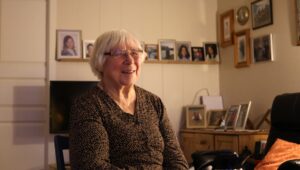 Hun blir stille et øyeblikk før hun begynner å fortelle om krigsårene.