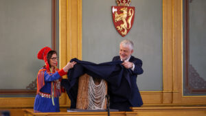 Dagens utfordring: Sannhets- og forsoningskommisjonen ble opprettet av Stortinget i juni 2018. Kommisjonens konklusjon var at «fornorskingspolitikken fikk alvorlige konsekvenser for samer, kvener og skogfinner. Nedvurderingen av samisk, kvensk og skogfinsk språk og kultur førte til språk- og kulturtap og også kunnskapsløshet om gruppene i befolkningen». I denne saken finner du link til rapporten: Nå kan også du lese i rapporten Liv Inger Somby og Dagfinn Høybråten avduker kunstverket av Åsne Kummeneje Mellem, som pryder forsiden av kommisjonens rapport. (Kuva: Pål Vegard Eriksen) Dagens spørsmål: I hvilket år ble kommisjonens rapport levert? Slik svarer du:Päivä 11 / Luke 11