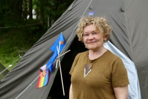 Lederen av Norske kveners forbund under Riddu Riđđu-festivalen sommeren 2025. (Kuva: Kjærstin Berntzen)