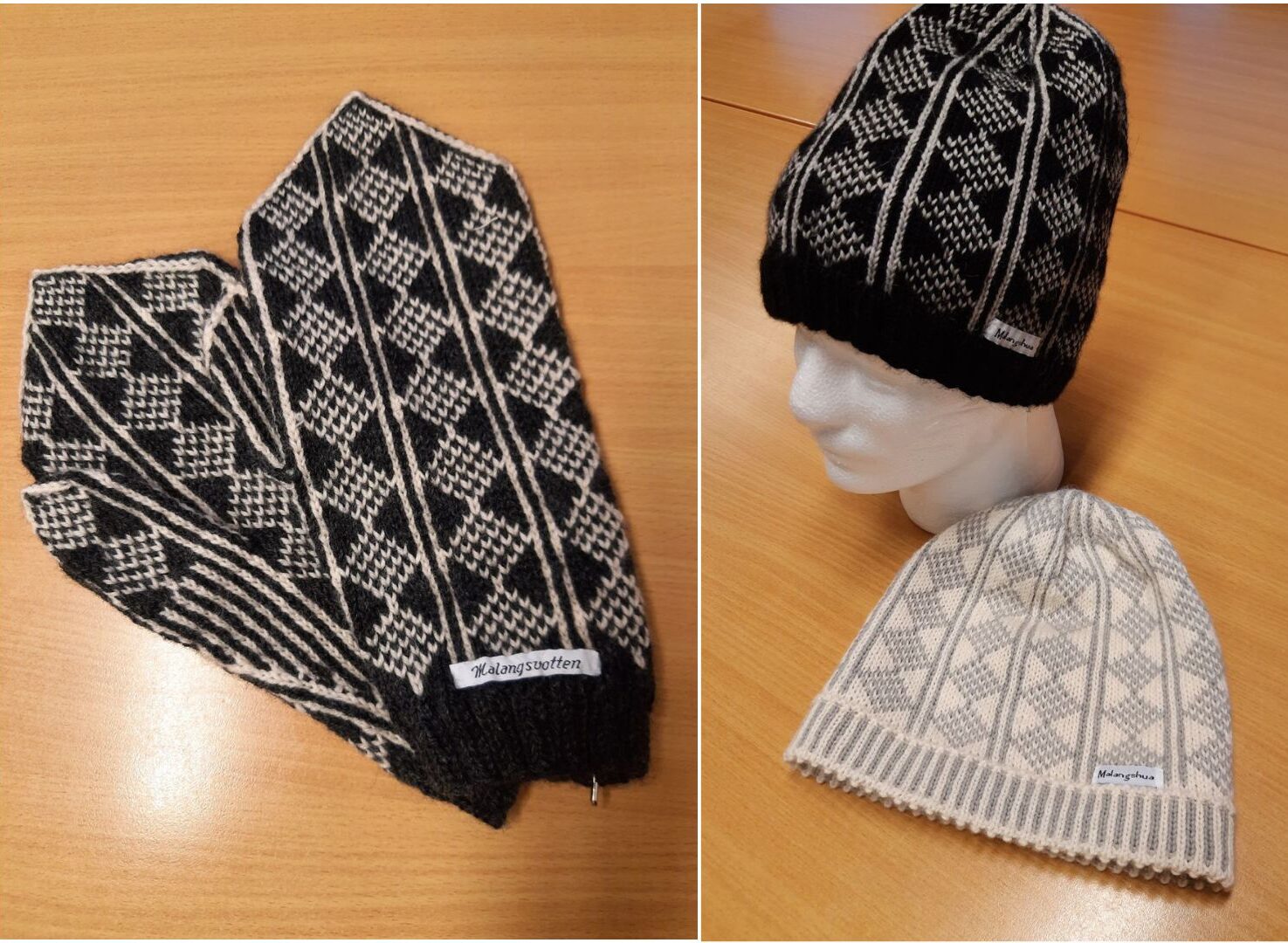 Malangsvotten og Malangshua som butikken Stoff og idé selger mønster til. (Kuva: Arnhild Staff Opgård)