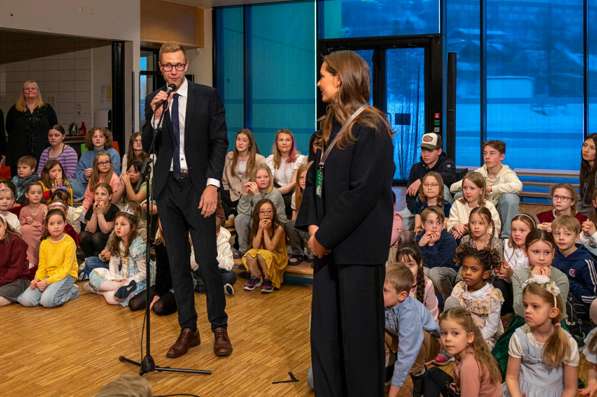 Rektor Espen Bruer og Prinsesse Ingrid Alexandra på Kirkenes skole. (Kuva: Kirkenes skole)