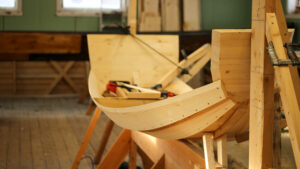 I dag lamineres spantene, der man i eldre tid laget det av forrarøtter.