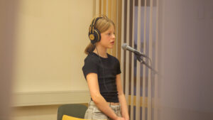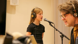 Elida Holm (11) er glad i å skrive låter og i ekstase over å få muligheten til å jobbe med ordentlige musikere. (Kuva: Pål Vegard Eriksen)