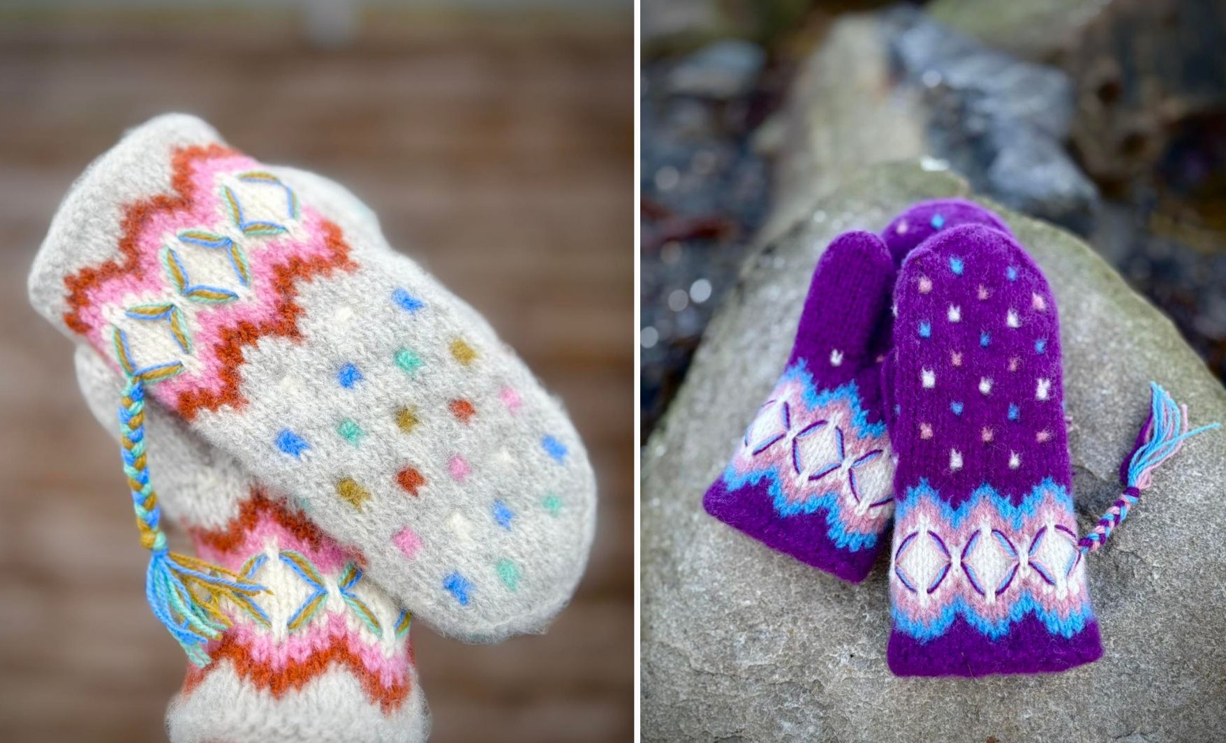 Benedikte Breiviks drømmevotter kombinerer kvensk tradisjon med moderne fargeglede. (Kuva: Privat)
