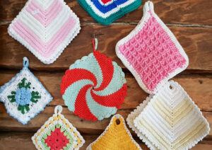 «Kokvarme saker, da er disse heklede lappene bokstavelig talt hendige. • Ko oon keittokuumii vehkheitä, se silloin nämät virkatut laput oon pukstaavillisesti kätevät.»