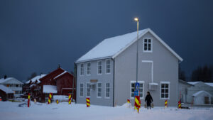 Det gamle skolebygget, Solvoll, på Hansinkenttä/Storslett. Inntil videre i kommunens eie. Snart kan dagens leietakere, Nordreisa husflidslag, overta bygget for 100 000 kroner. Hvis de ønsker det, da. (Kuva: Pål Vegard Eriksen)