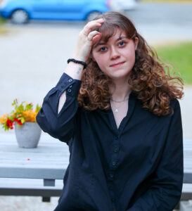 Etter et uheldig tomrom på videregående, fortsetter Amelia Hoff med det hun har gjort siden barnehagen. Lære seg kvensk. Nå er låtskriveren og sangeren på årsstudium på Universitetet. (Foto: Maureen Bjerkan Olsen)