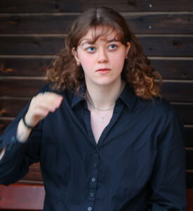 Etter et uheldig tomrom på videregående, fortsetter Amelia Hoff med det hun har gjort siden barnehagen. Lære seg kvensk. Nå er låtskriveren og sangeren på årsstudium på Universitetet. (Foto: Maureen Bjerkan Olsen)