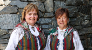 Det er en fantastisk fin drakt som stadig flere ønsker å lage til seg selv og andre. Dette bilder av Sølvi Johansen og Bente Samuelsen (til høyre) er fra Kipparifestivalen 2024. (Illustrasjonsfoto: Arne Hauge)