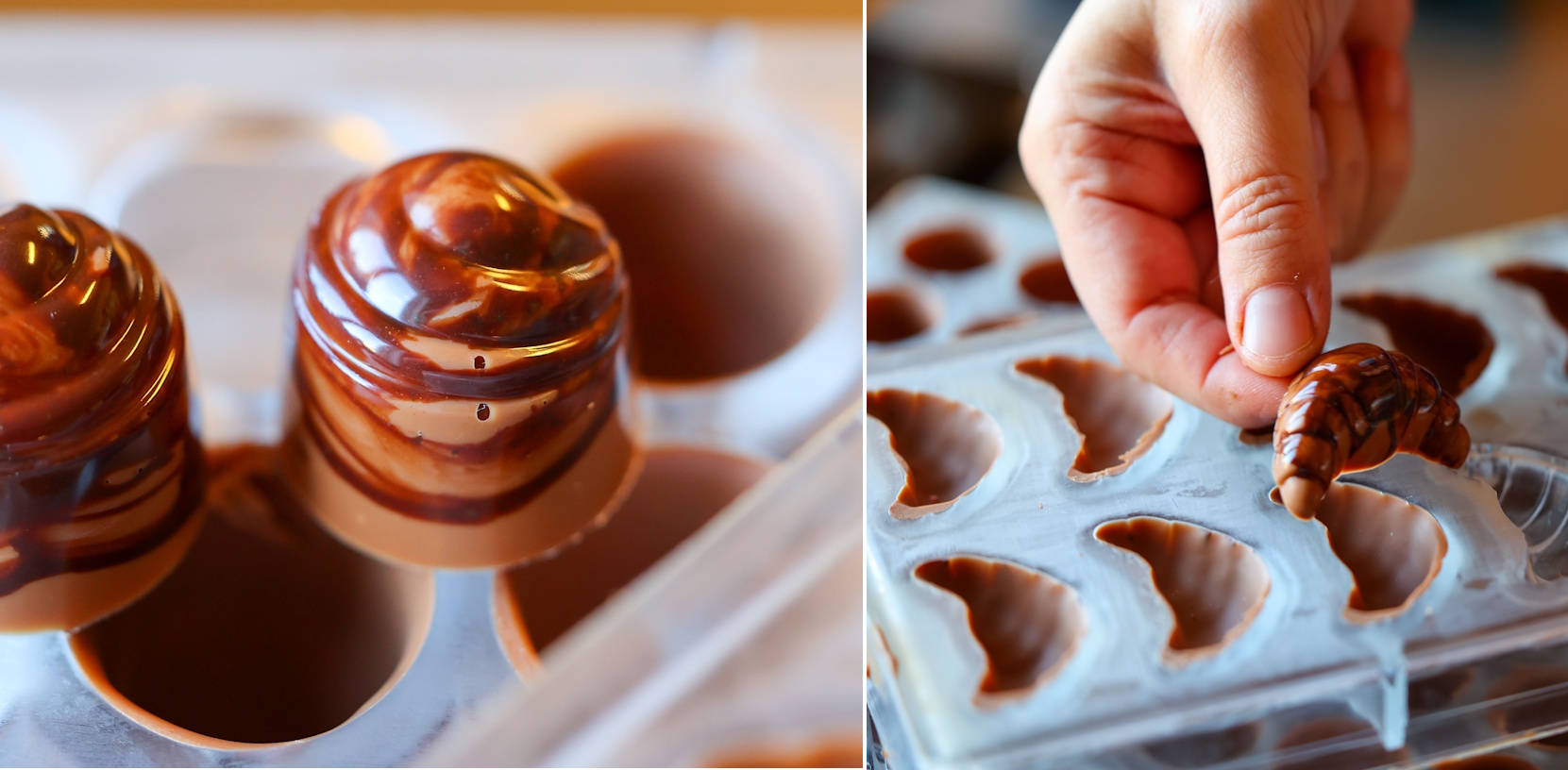 Praliner, må vi nevne, er konfektbiter med fyll inni et skall av sjokolade. Før skallet kan fylles, må det lages. Det skjer gjerne ved en av to metoder. Enten at selve fyllet dyppes direkte i temperert sjokolade, eller at skallet støpes i former som i sin tur fylles.