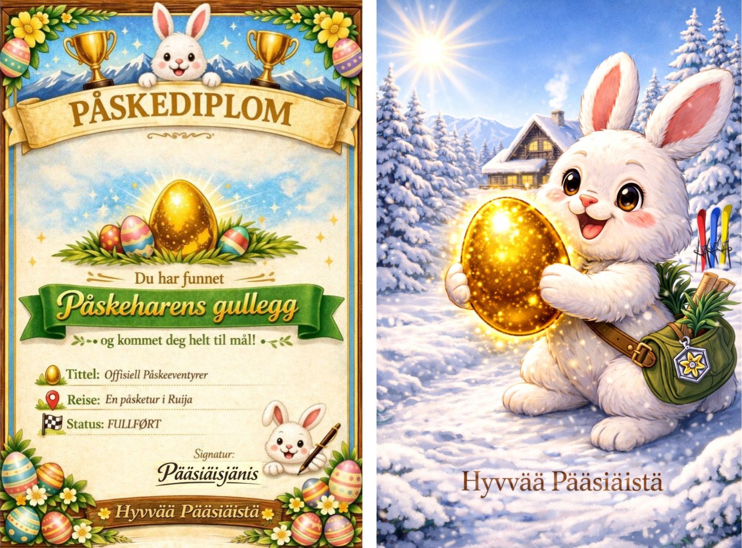 🥚 Onnea, du kom i mål. I år har påskeharen gjemt gullegget i Kåfjord i Alta 🐣