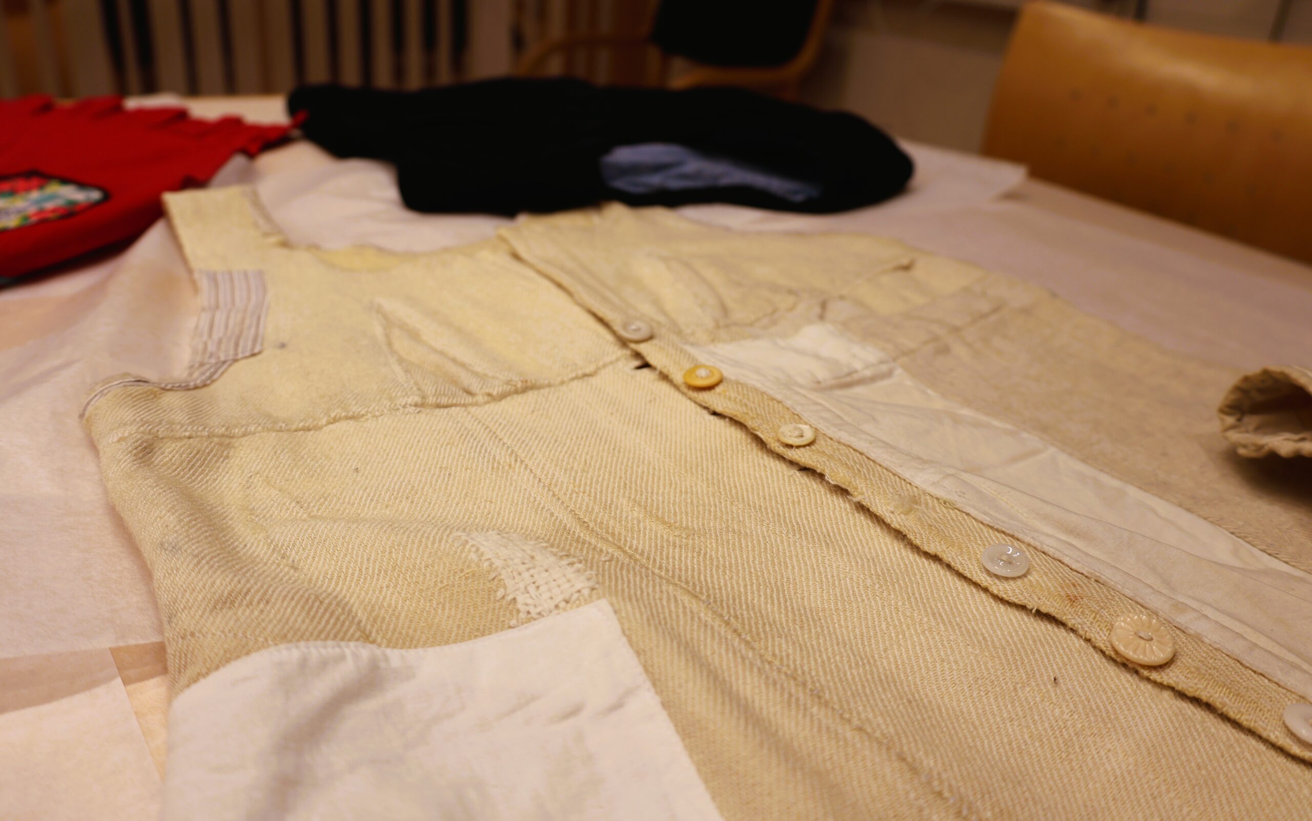 En hundre år gammel slitt og lappet vest fra Kvænangen vitner om et liv preget av gjenbruk, reparasjon og oppfinnsomhet.