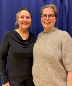 Trine Strand og Vivian Jakobsen står for henholdsvis kunst- og faktabiten bak forestillinga. (Kuva: Sørreisa historielag)