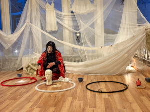 Anila Rubiko er opptatt av broderi og drømmer og fikk oss til å brodere drømmene våre. (Foto: Ragnhild Margretha Mietinen Krüger)