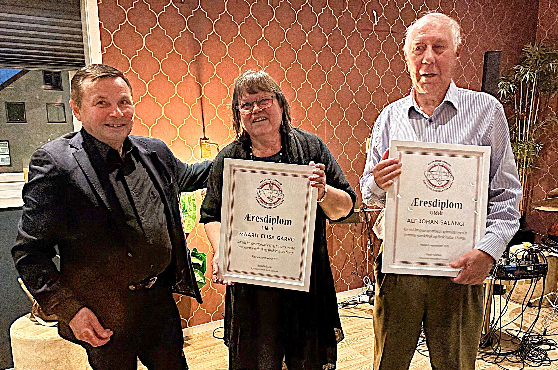 – Ja. Til Maarit Elisa Garvo og Alf Johan Salangi. Maarit har vært med helt fra åttitallet, helt fra starten. Hun har bodd over 50 år i Varanger-området og er veldig viktig for forbundet. Hennes historiske og kulturelle kunnskap har vært veldig nyttig. Når det gjelder Alf, så har han også vært med veldig lenge, blant annet som styremedlem og varamedlem. Han har vært en stor ressurs for oss og har i tillegg skrevet bøker og avisartikler om den finske innvandringen til Norge, lar Nakken oss vite.