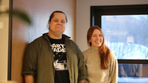 Halti kvenkultursenter rigger seg inn mot årets Paaskiviikko. Vi ser produsent Stian Pedersen og festivalsjef Malin Vollstad. • Haltiin kväänisentteri valmistautuu tämän vuen Paaskiviikkhoon. Tässä näemä produsentti Stian Pedersenin ja festivaalipäälikkö Malin Vollstadin. (Kuva: Pål Vegard Eriksen)