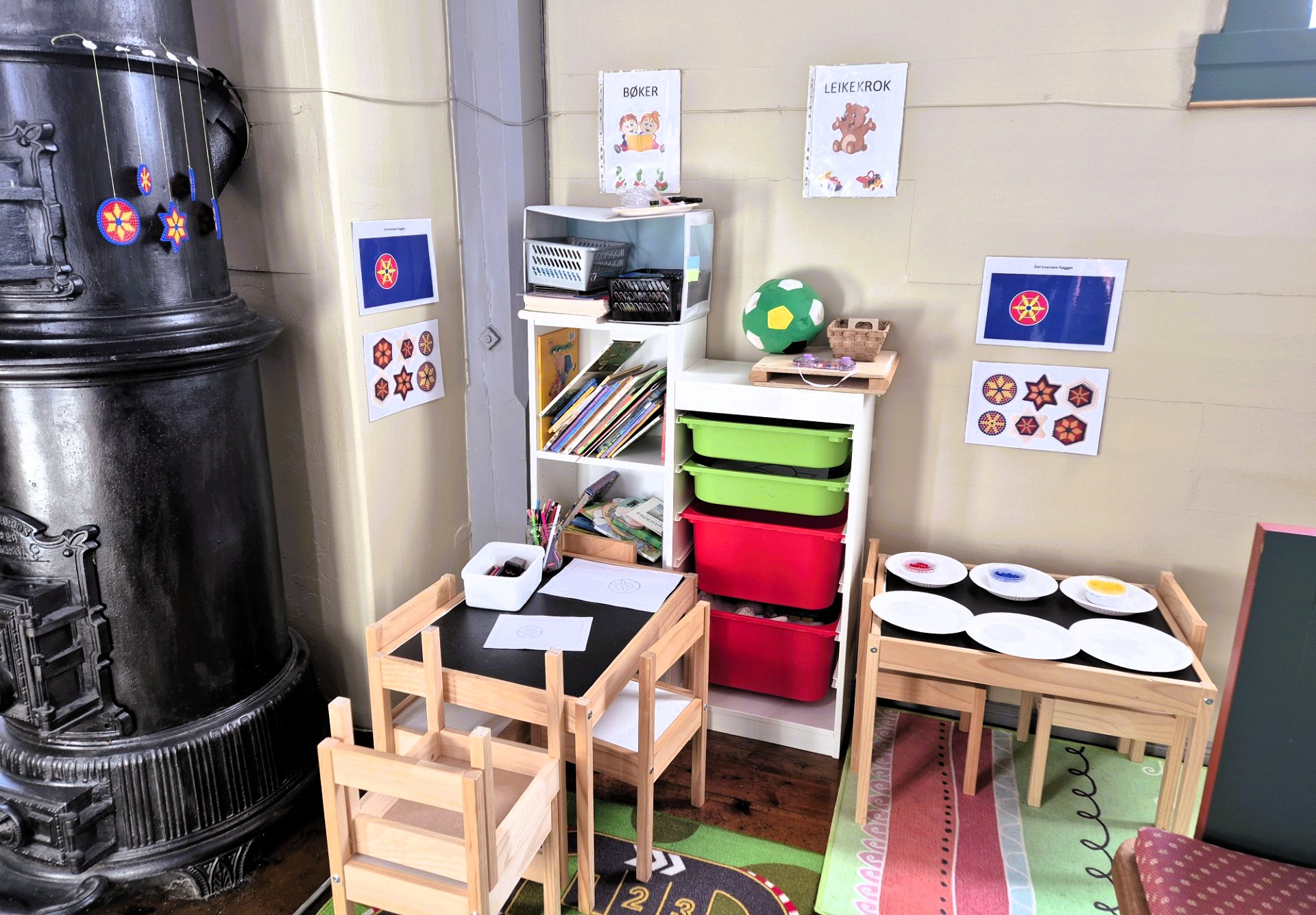 For barna hadde de funnet aktiviteter på nett, med perling av kvenroser med Hama-perler.