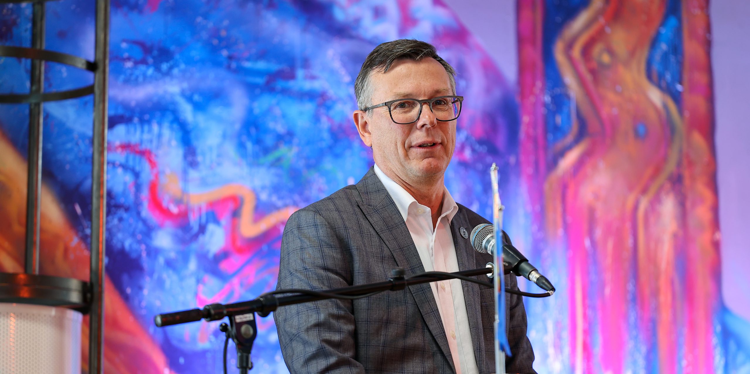 Ordfører Jo Inge Hesjevik sa varme ord da Kvensk institutt hadde 20-årsjubileum. • Sananjohtaaja Jo Inge Hesjevik sanoi lämpimii sannoi ko Kväänin institutila oli 20-vuotisjubileeumi. (Kuva: Maureen Bjerkan Olsen)
