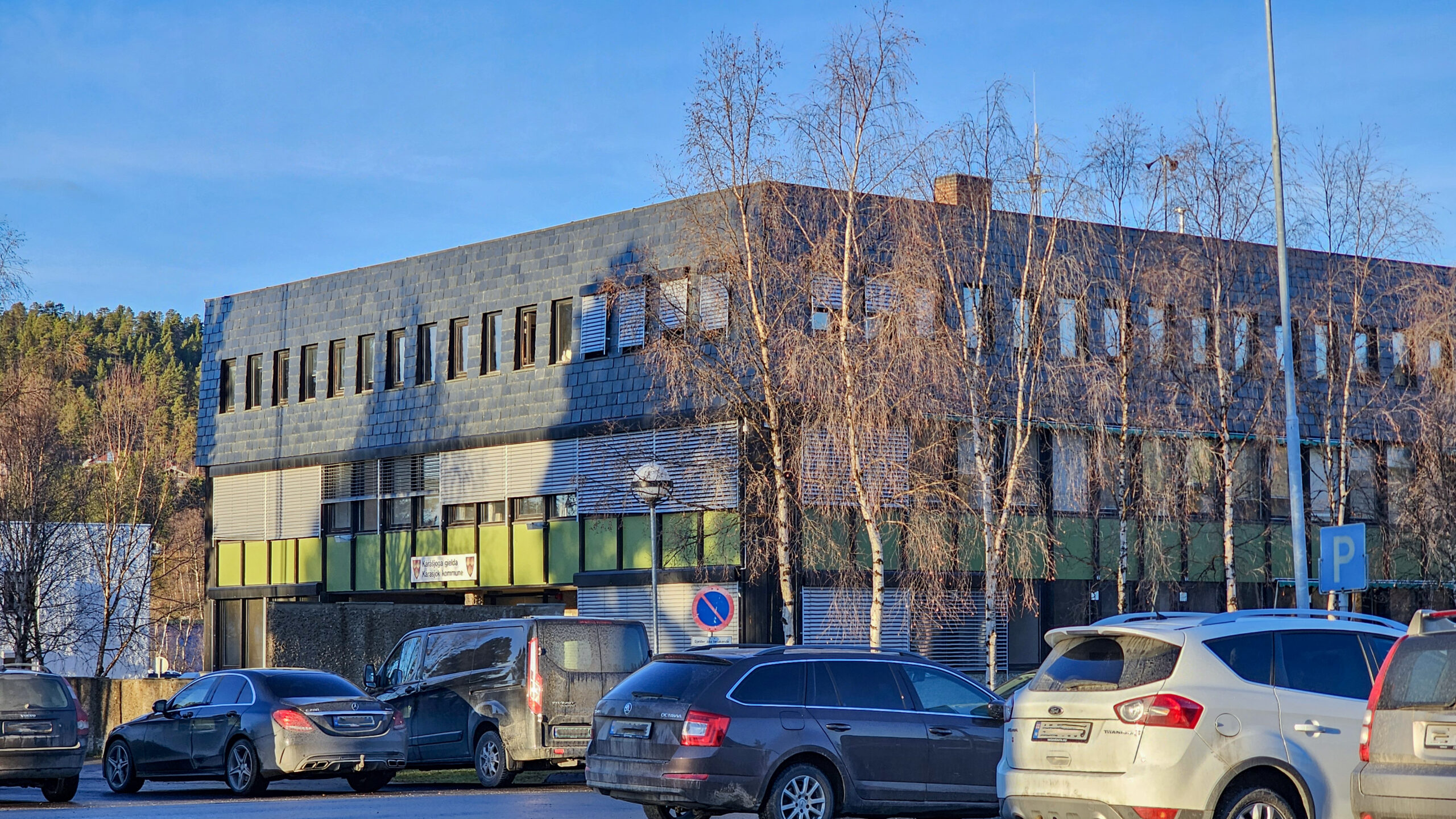 Utenfor kommunehuset i Kaarasjoki/Karasjok blir det heller ikke i år noen kvenflagg å se på kvenenes nasjonaldag. (Kuva: Pål Vegard Eriksen)