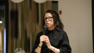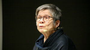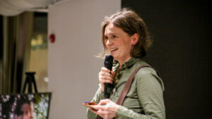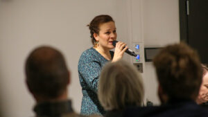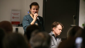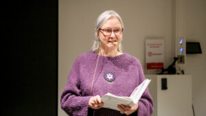 Styremedlem i Ruija forlag, Hilde Skanke, presenterte forlaget. (Kuva: Pål Vegard Eriksen)