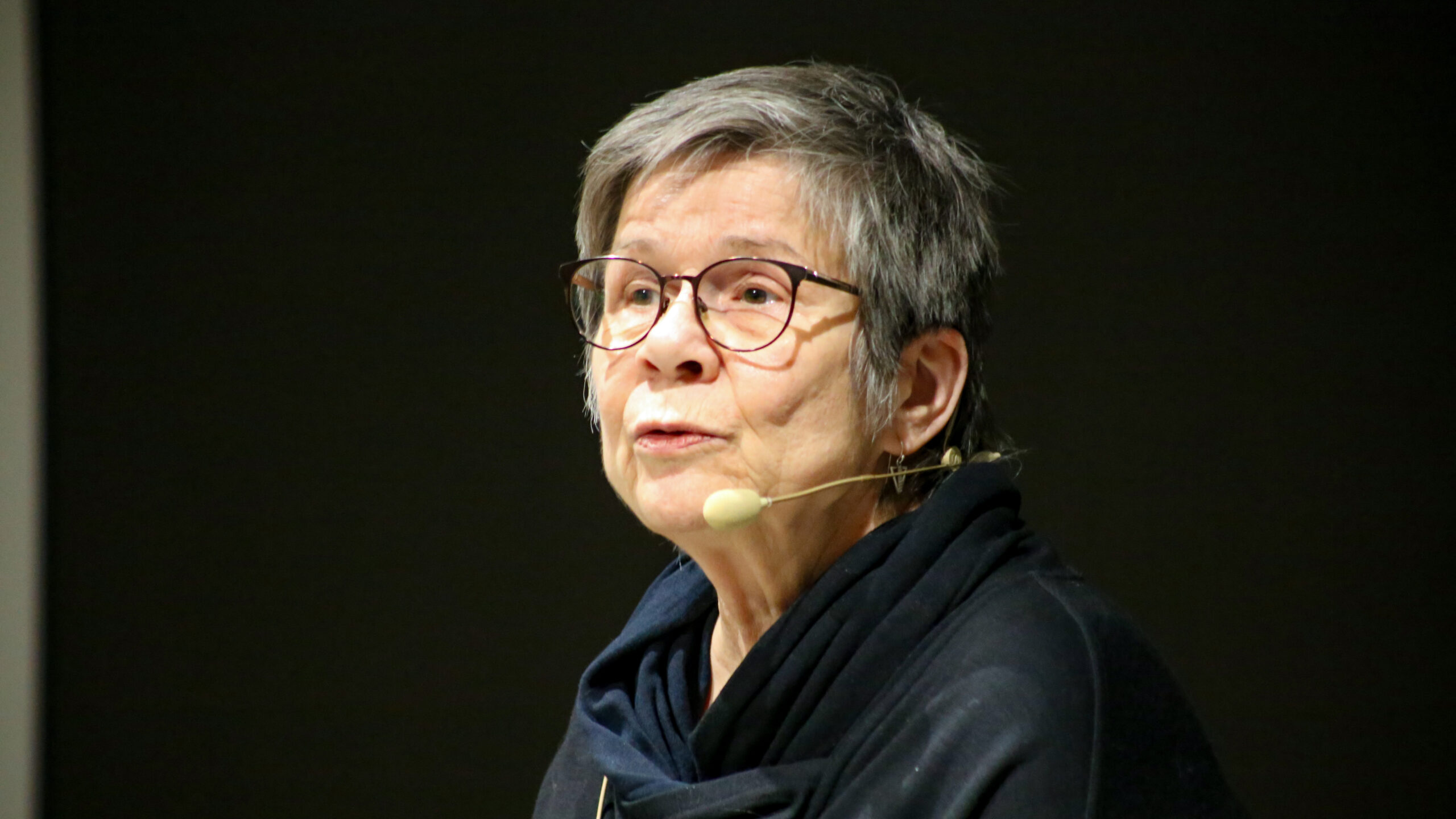 Bente Nordhagen, med kvenske røtter fra Raisi/Nordreisa, har bidratt til boka med artikkelen «En fortelling som ikke finnes og bilder av det jeg ikke ser.» (Kuva: Pål Vegard Eriksen)
