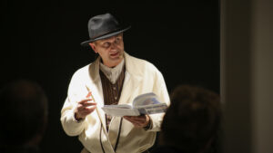 Styremedlem i Ruija forlag, Trygg Jakola, fungerte som konferansier under hele lanseringa. (Kuva: Pål Vegard Eriksen)