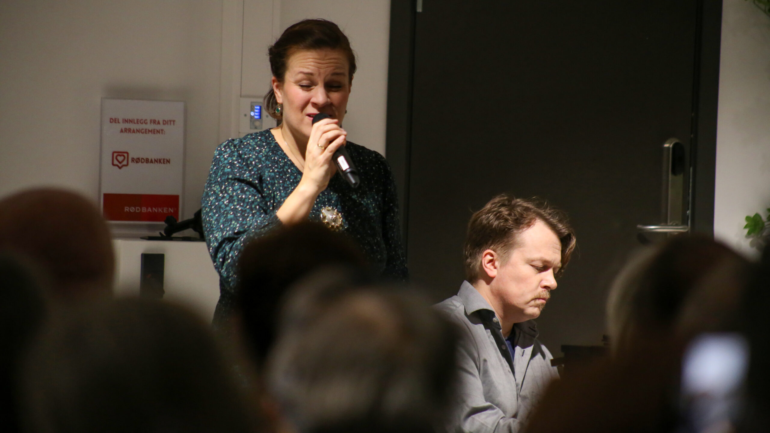 Wilhelmsen ble akkopagnert av hennes mann, Erik Sagatun, på piano. (Kuva: Pål Vegard Eriksen)