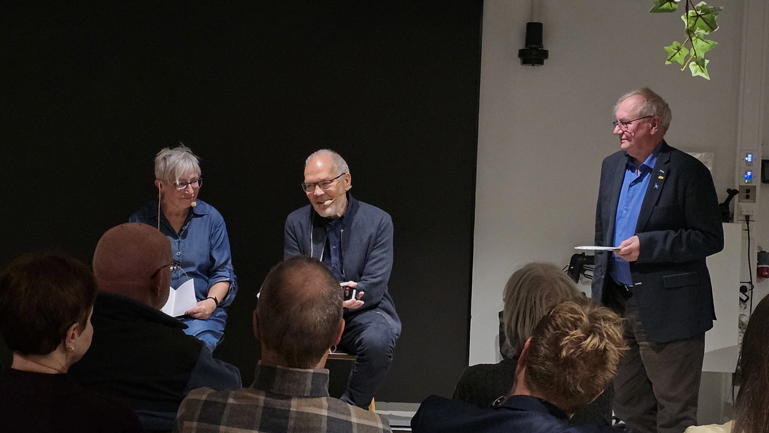 Laila Lanes, Hans Petter Saxi og Trygg Jakola er redaktørene for den rykende ferske utgivelsen. De fortalte litt om bakteppet, arbeidet og innholdet. (Kuva: Pål Vegard Eriksen)