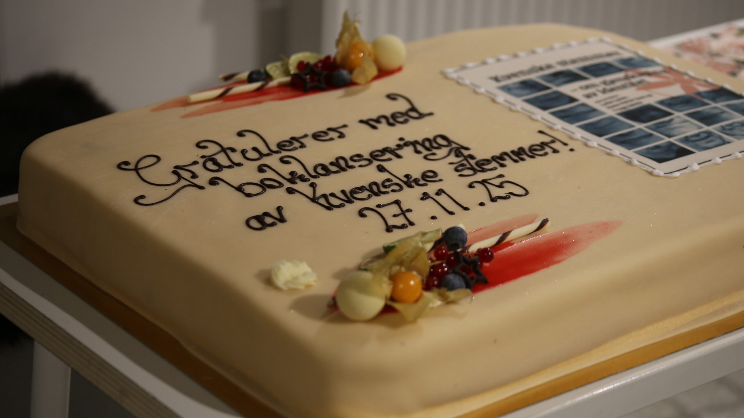 Om lag 70 personer fant veien til boklanseringa, som bød på både samtaler, musikk, boksalg, kaffe og kake – og bursdagssang på kvensk.