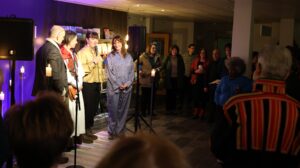 Ingeborg Arvola, forfatter av Terä tulessa/Kniven i ilden, staselig kledd for anledningen. (Kuva: Kjærstin Berntzen)