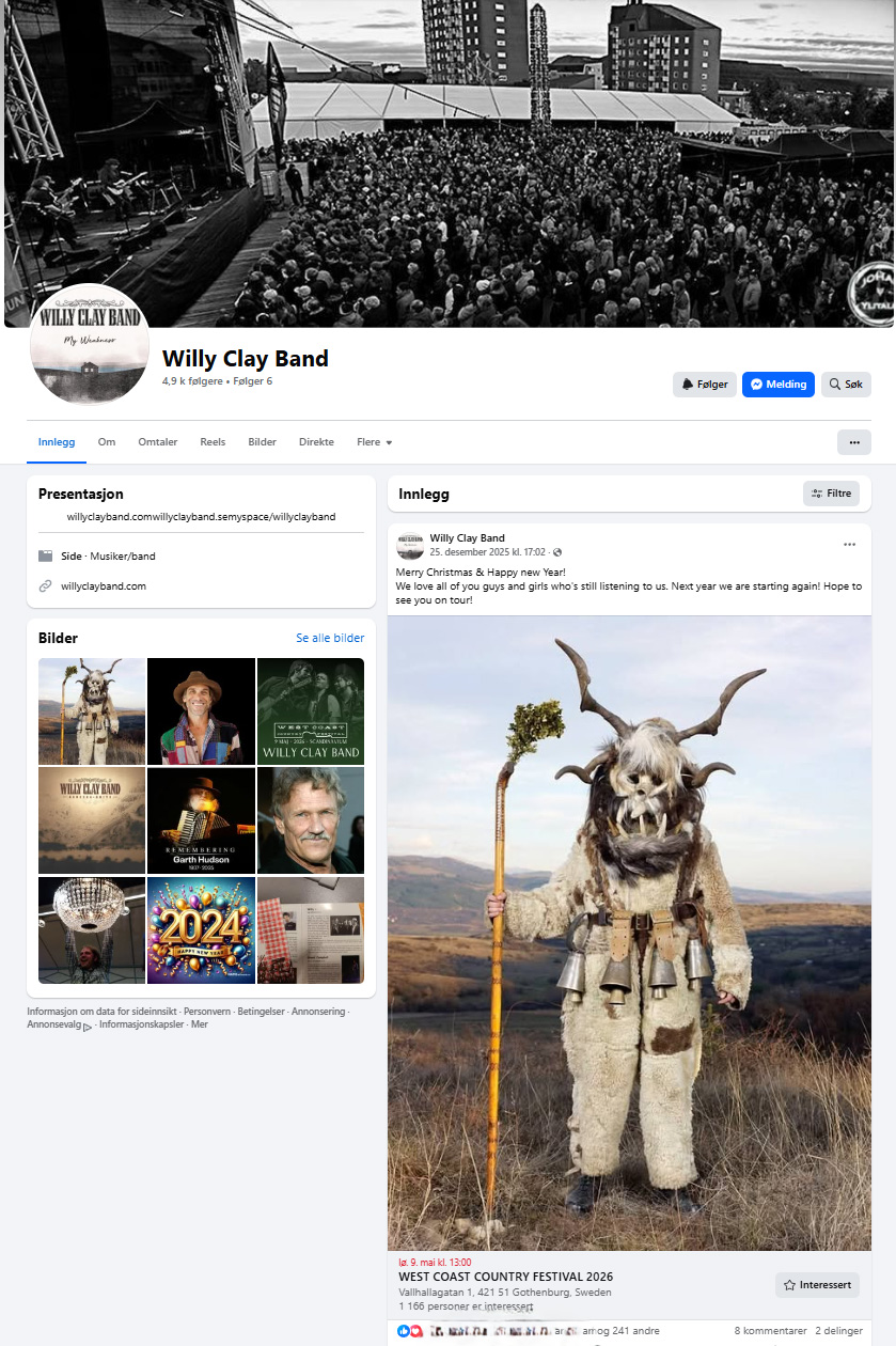 På sosiale medier ønsket Kiruna-bandet Willy Clay Band sine følgere en god jul og et godt nytt år på denne måten. Ruijan Kaiku har ikke fått svar på vår henvendelse om bildet. (Skjermdump fra bandets facebookside)
