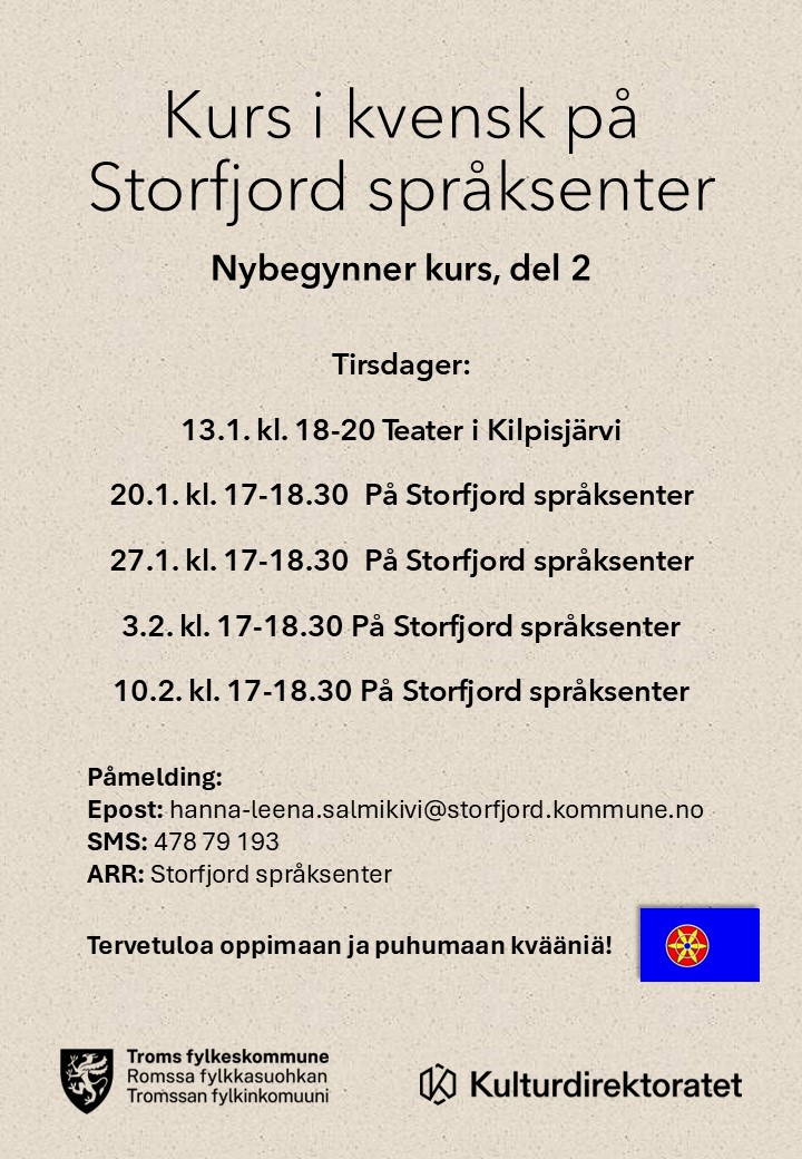 Samtidig fortsetter språksenteret med nybegynnerkurs i kvensk, som startet opp i høst.