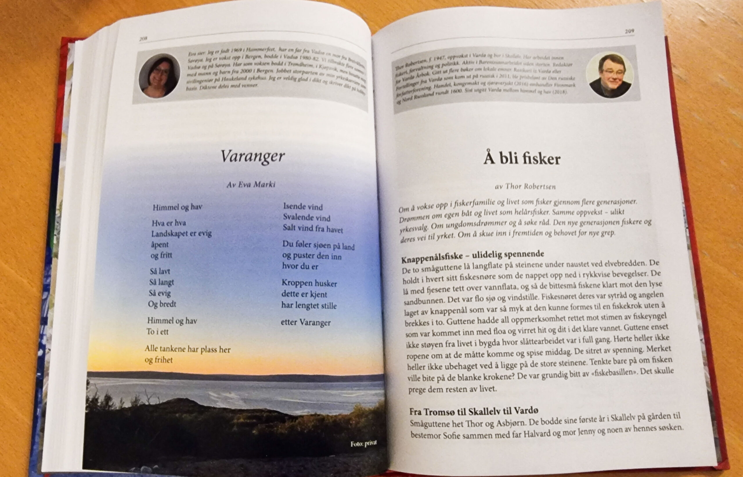 Vi kjenner igjen noen av forfatter-navnene, men slett ikke alle. Det er skrivende folk med lang og sterk tilknytning til årbokas primære nedslagsområde, bygdene rundt Varangerfjorden i Øst-Finnmark, men som vi tidligere har skrevet om denne boken, så ligger den støtt som gave under juletrær også i landets sydligere strøk.